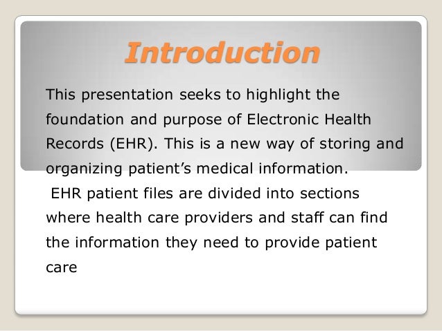 Introduction_to_electronic_medical_records. ppt free download as powerpoint presentation (. ppt), pdf file (. pdf), text file (. txt) or view presentation slides online. scribd is the world's largest social reading and publishing site. Will electronic medical records be safe? electronic medical records ppt presentation with the effort to digitize health records in the works, see if your electronic medical record will be safe. advertisement by: molly edmonds in today's world, many people think nothing of oversharing. Sep 17, 2014 · • the expired and mlc records are kept permanently for legal purposes. • efforts shall be made to computerize the medical records for quick retrieval 30. electronic medical records • the medical record has been a collection or package of handwritten or typed notes, forms & reports.